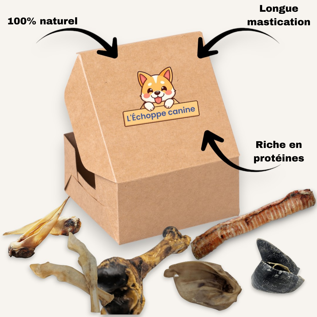 Box très complète avec un bon rapport qualité/prix. La livraison a été rapide. Mon golden s'est régalé !